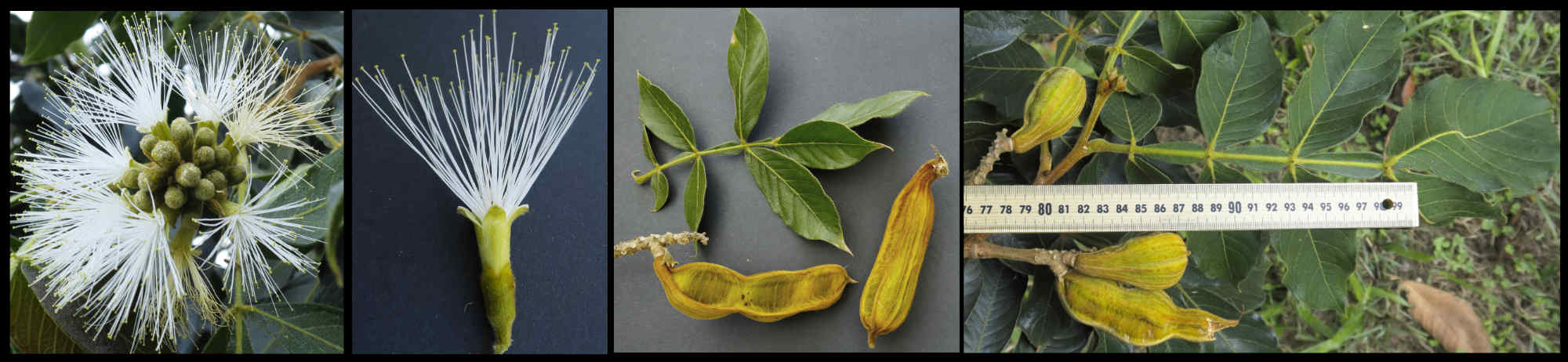 It is a similar tree to Inga edulis but has smaller leaves, much smaller flowers (calyx about 4 mm and the corolla 7-8 mm long), fewer stamens and a wider pod.