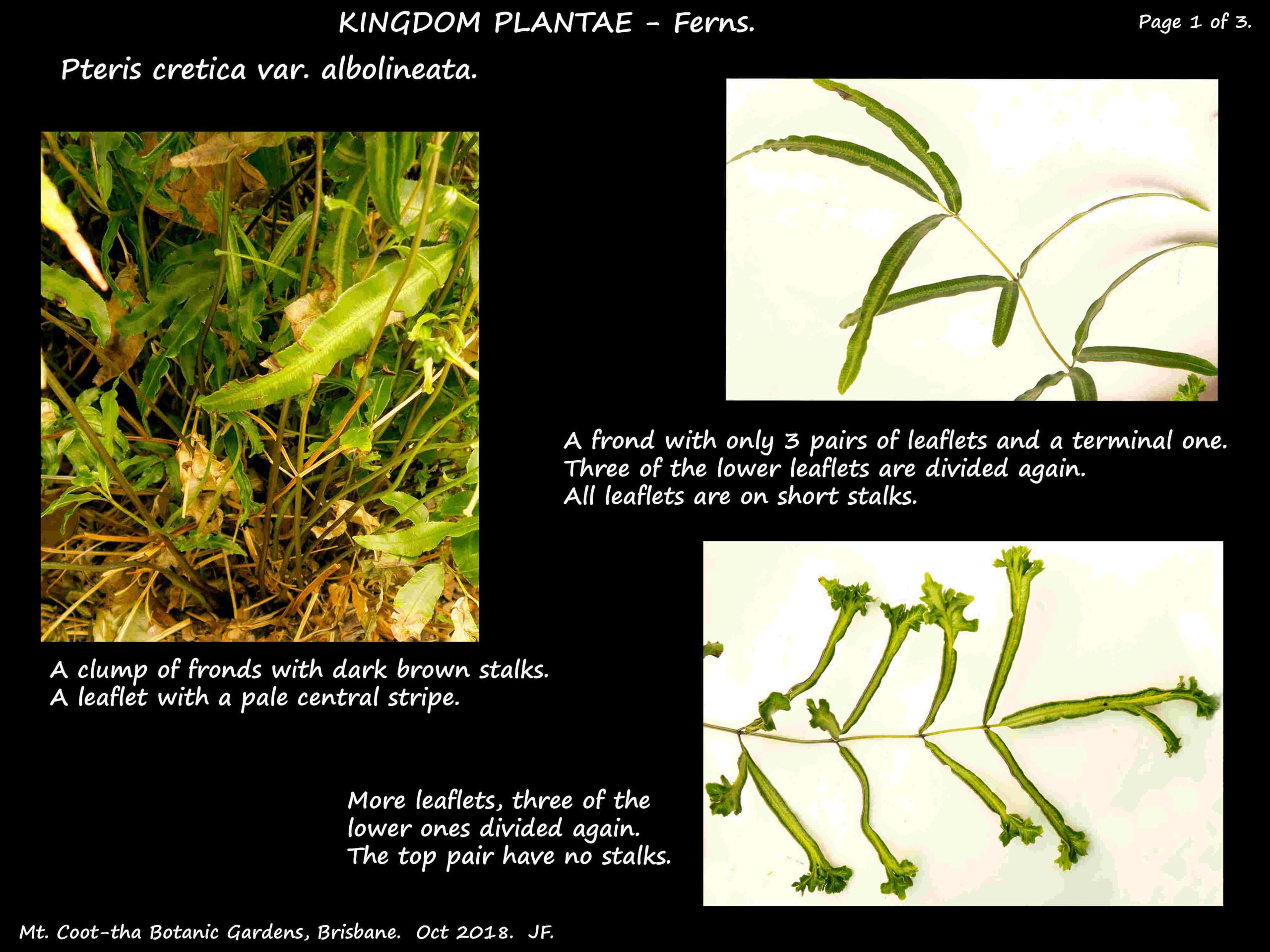 P. cretica var. albolineata differs only by the fronds having wider leaflets with a pale centre.
