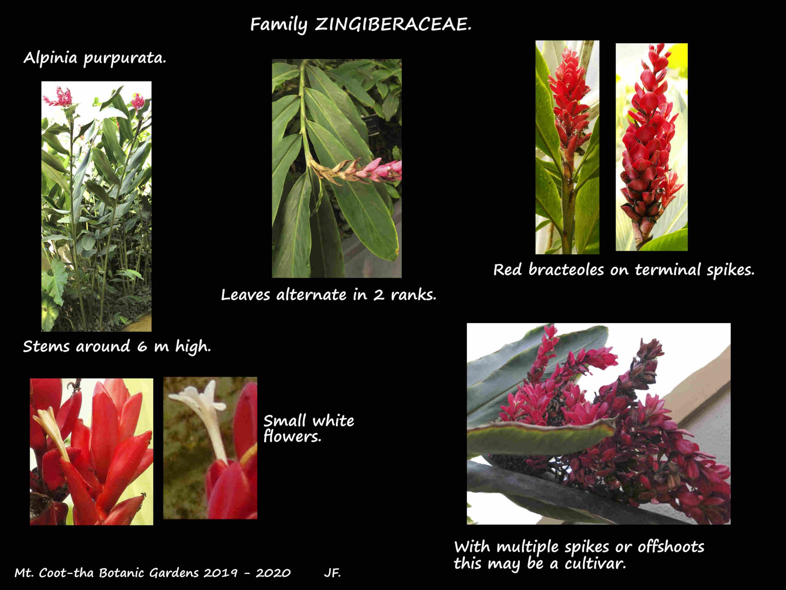 Red ginger, native to Malaysia, is in Family Zingiberaceae.